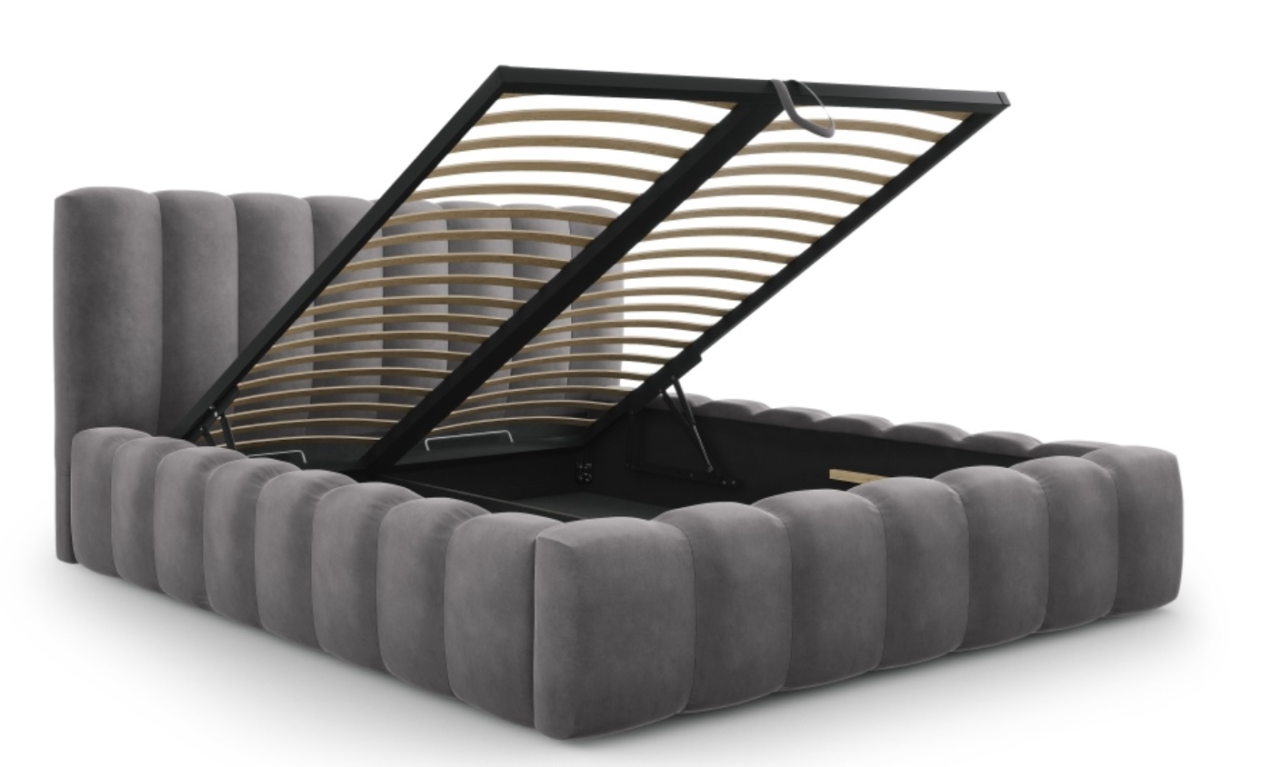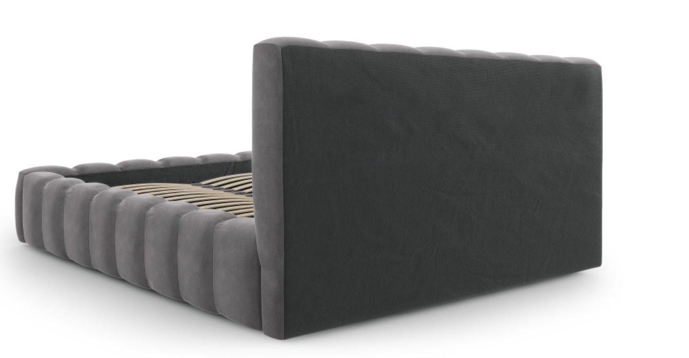 Tapicerowane łóżko SUMBA wyróżnia się prostą, geometryczną formą i starannym wykończeniem. Wysokie, efektowne wezgłowie nadaje wnętrzu charakteru, a praktyczny pojemnik na pościel zapewnia dodatkowe miejsce do przechowywania.